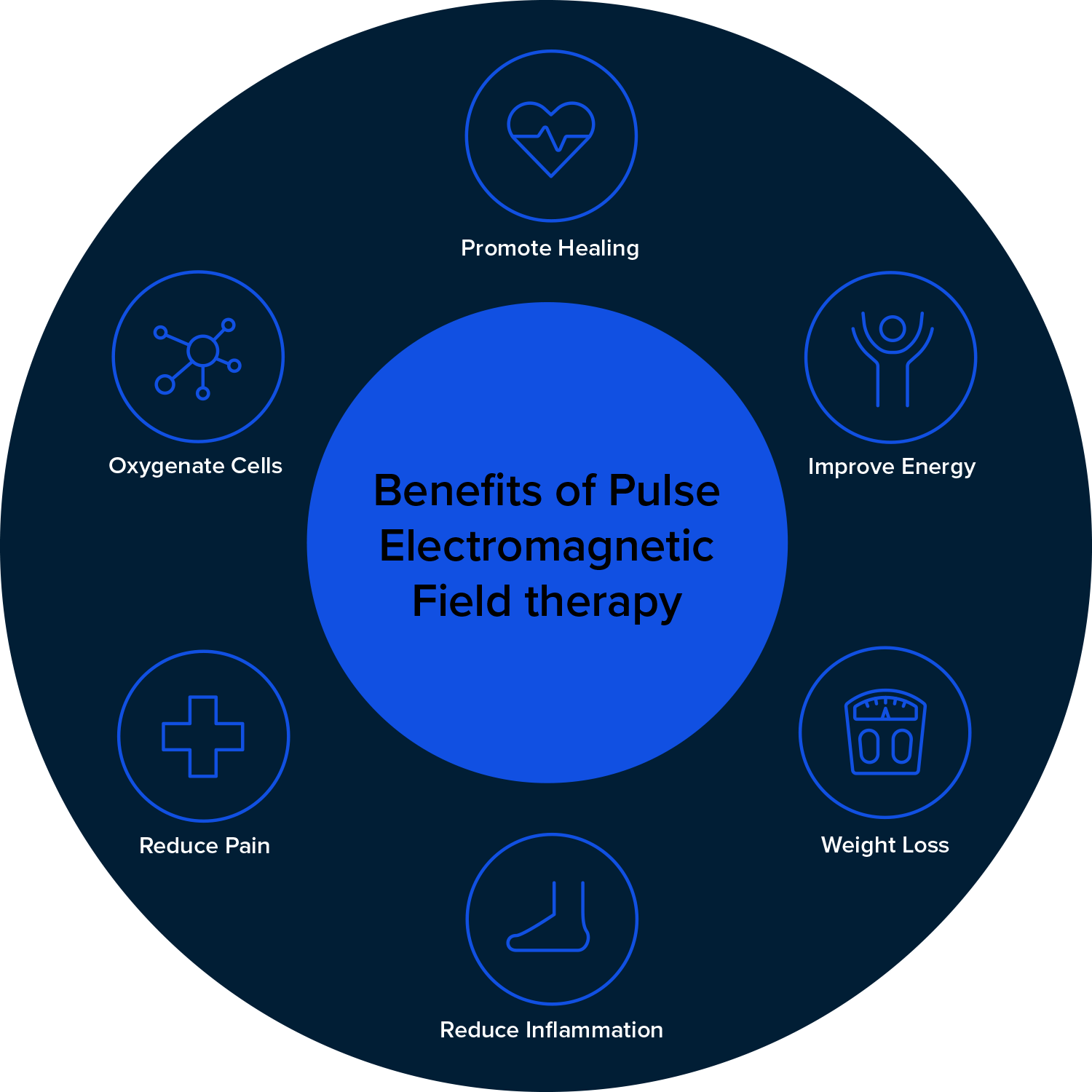 PEMF (Pulsed Electromagnetic Field) therapy has been used to treat a wide range of conditions, including pain, inflammation, depression, and anxiety. Here are some examples of PEMF therapy: